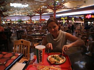Bij het motel aangekomen gelijk maar weer in zwembadje gedoken. Niet te lang buiten in je blootje want ons Hollandse huidje heeft nog niet zoveel zon gehad. Na het zwemmen wilden we nog wat voorbereidend inkopen doen voor de komende dagen en zo kwamen we bij een foodcourt uit waar we een pizza hebben gegeten. |